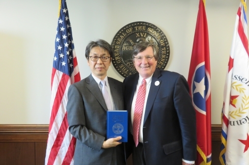 小林総領事は,ナッシュビル桜祭り等文化行事について説明しつつ,日・ナッシュビル市の長年の良好な関係やテネシー州の日系企業活動について意見交換しました。