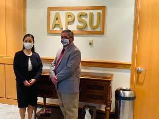 On April 27th, 2021, Consul-General Kayoko Fukushima visited Austin Peay State University (APSU) in Clarksville, TN. Consul-General Fukushima had a meeting with Dr. Michael Licari, President of APSU, and then met with students from the Asian Studies Program and discussed various topics related to Japan. APSU offers various Japan-related subjects in addition to Japanese language classes and APSU has partnerships with 3 universities in Japan.