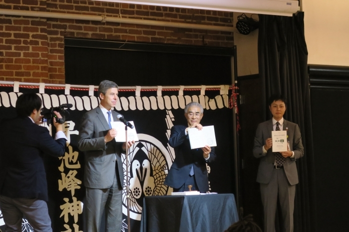 今回、こうした両市の絆を背景に遠野市訪問団がチャタヌーガ市を訪れ、日本の伝統的な伝承文化を伝える神楽公演を実施しました。同公演に出席した小林総領事は、その挨拶の中で、姉妹都市1周年を祝すと共に直接体験型の文化交流の重要性を強調しました。